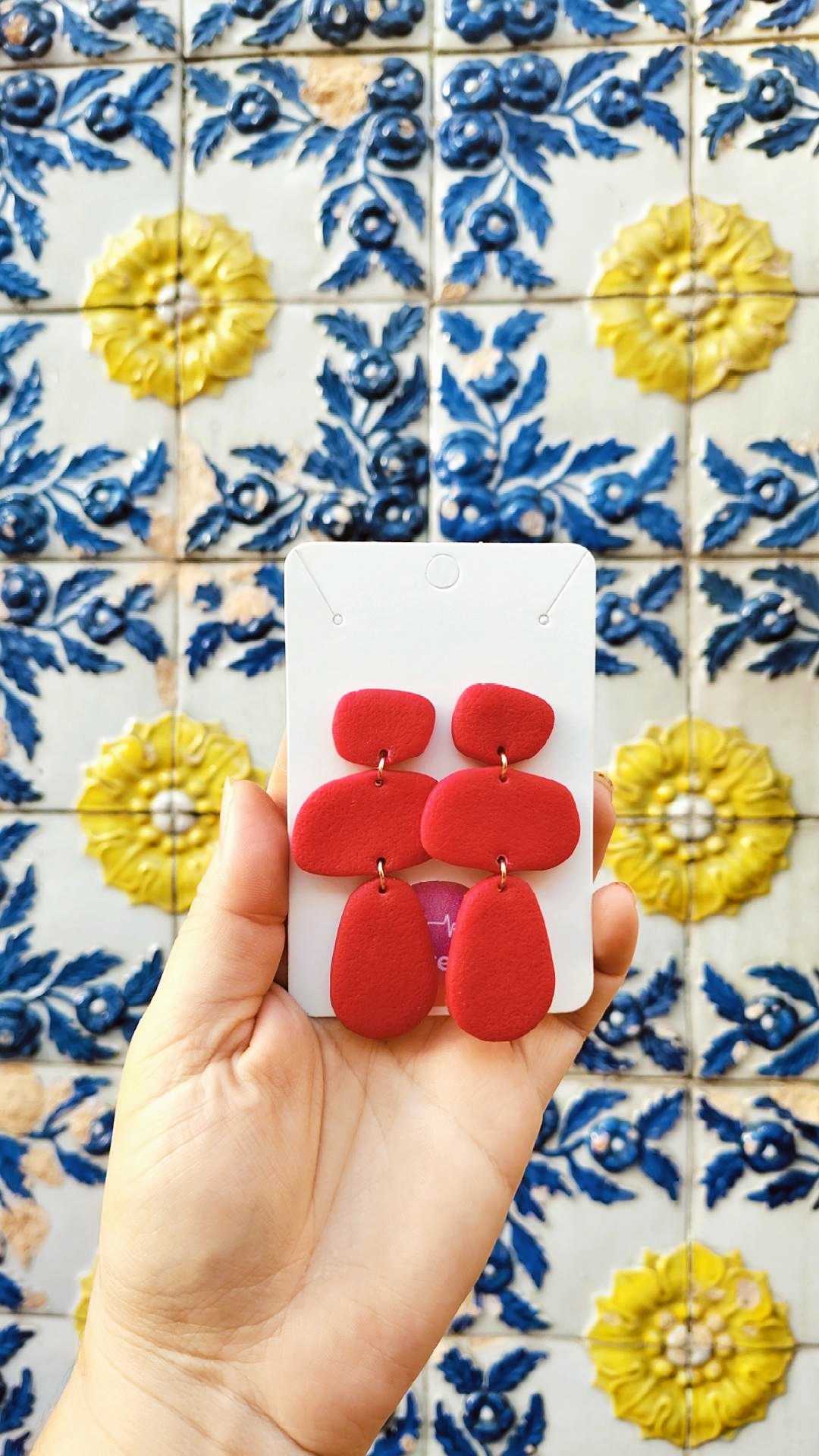 Além disso, a peça oval possui curvaturas que dão ainda mais charme aos brincos coloridos e feitos à mão.