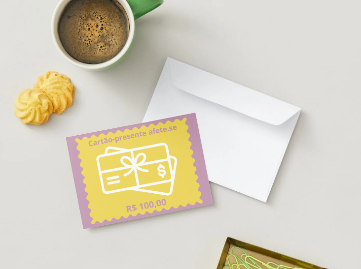 Com o nosso cartão, você escolhe o valor do crédito e finaliza a compra indicando o email e/ou telefone do destinatário. Automaticamente, enviamos o código do vale-presente para a pessoa escolhida, que poderá usar esse crédito para comprar qualquer produto em nosso site.