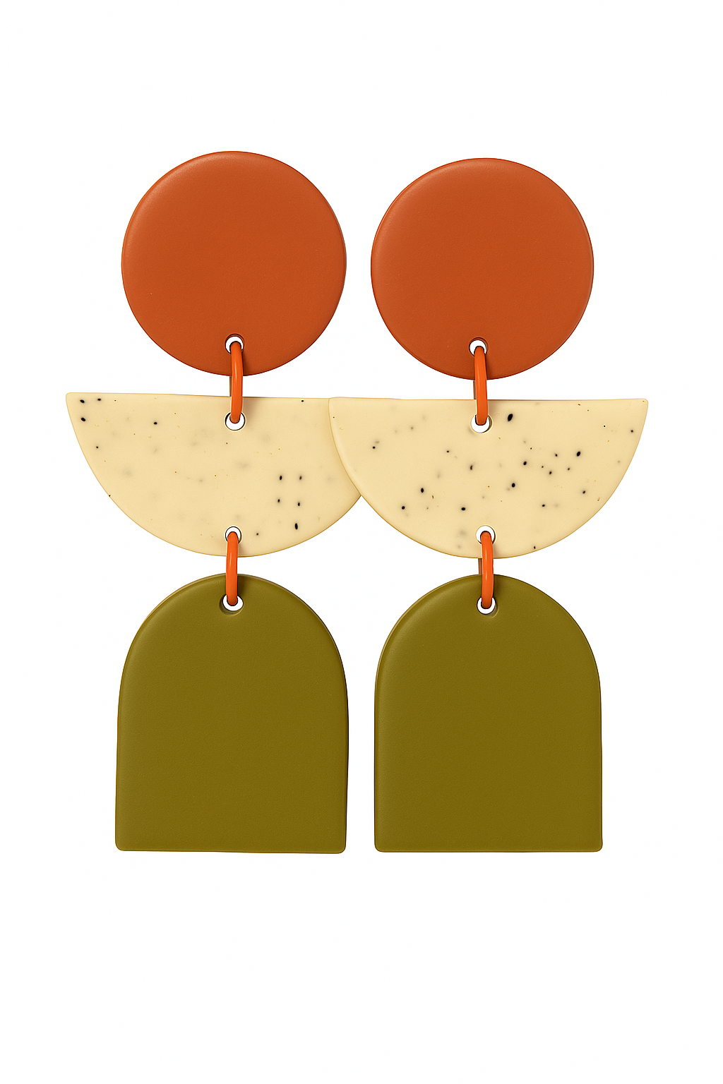Par de brincos em cerâmica plástica com pinos em aço inoxidável (ou seja, hipoalergênicos). Pessoas com alergia a níquel e outros metais, podem confiar em peças sem risco de inflamação na pele. Tarrachas em aço inoxidável com opção de tarracha também em silicone. Além da cola especial para os pinos, há um reforço de colagem com resina, o que garante resistência e durabilidade às suas peças.